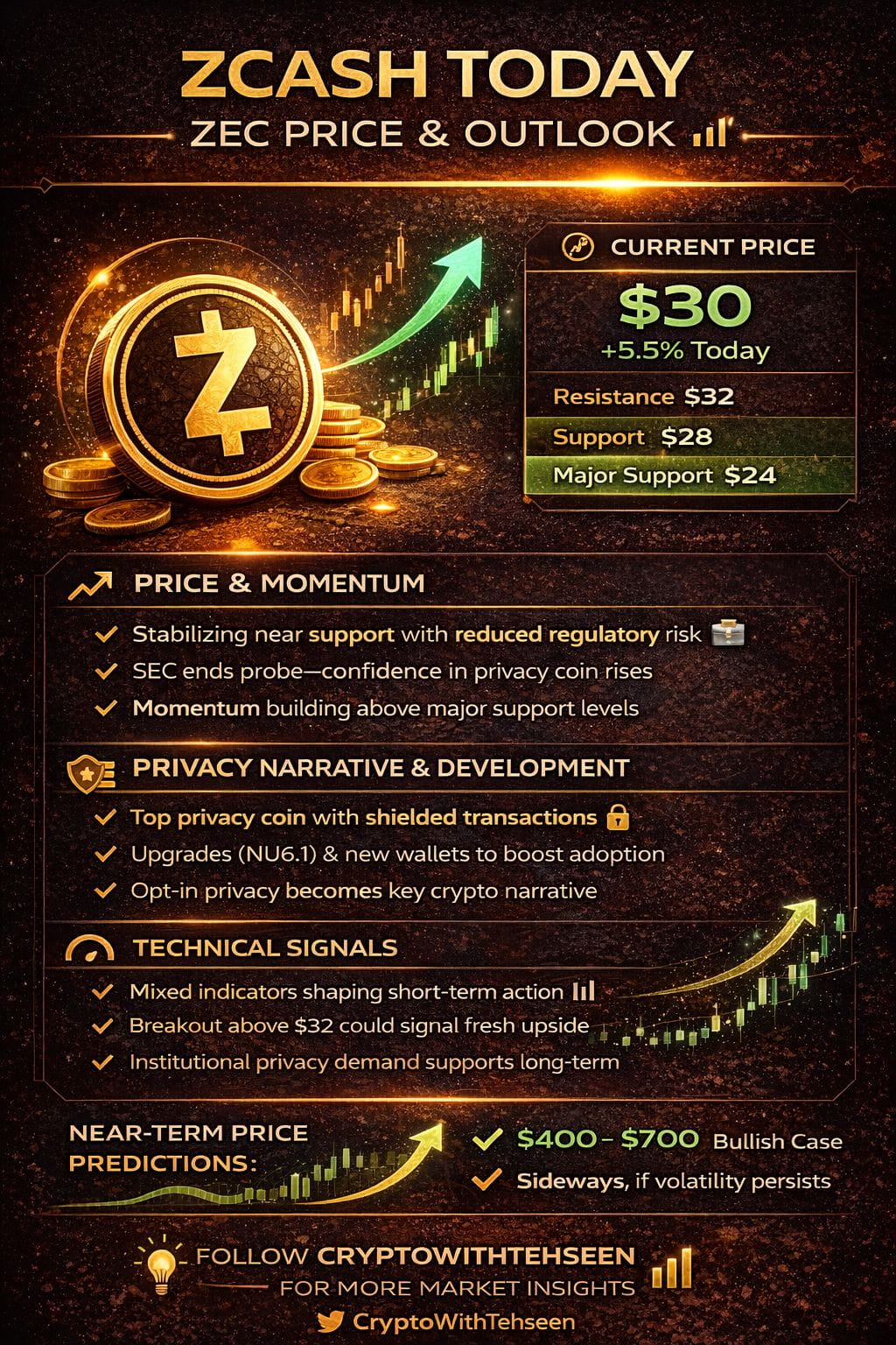 ZEC is showing steady movement with buyers watching key resistance levels.