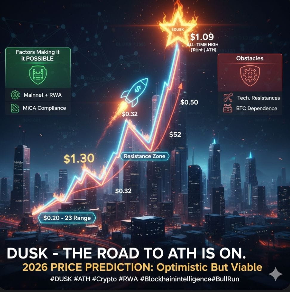Llegar al ATH (All-Time High) de $1.09 (registrado en diciembre de 2021) es el gran objetivo de la comunidad de Dusk para este 2026. Aunque estamos en un momento de euforia, aquí tienes un análisis realista basado en los datos actuales al 22 de enero de 2026: