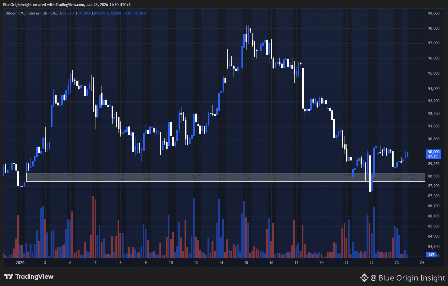 BTC has just revisited the CME Futures Gap around 88.5k–89k the same inefficiency left behind during the previous impulsive rally.