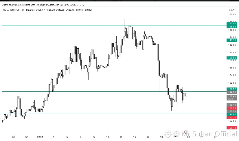 $SOL is currently reacting right at a key demand zone around 125–130, which previously acted as a strong base before the last expansion. After the sharp sell-off from the 145–147 resistance, selling pressure has slowed down and price is no longer making aggressive lower lows. This behavior usually signals that panic selling is fading and the market is deciding its next direction.As long as 124–125 holds, this move looks more like a corrective pullback rather than a full trend reversal. Consolidation above this zone increases the probability of a relief bounce toward 138–143, where prior structure and supply sit. Buyers stepping in with higher lows would confirm short-term recovery strength.However, if SOL loses 124 with strong volume, downside risk opens toward 120–118, which is the next major support area from the broader structure. That level would likely attract stronger buyers again, but momentum would stay weak until SOL reclaims 130–132 decisively.