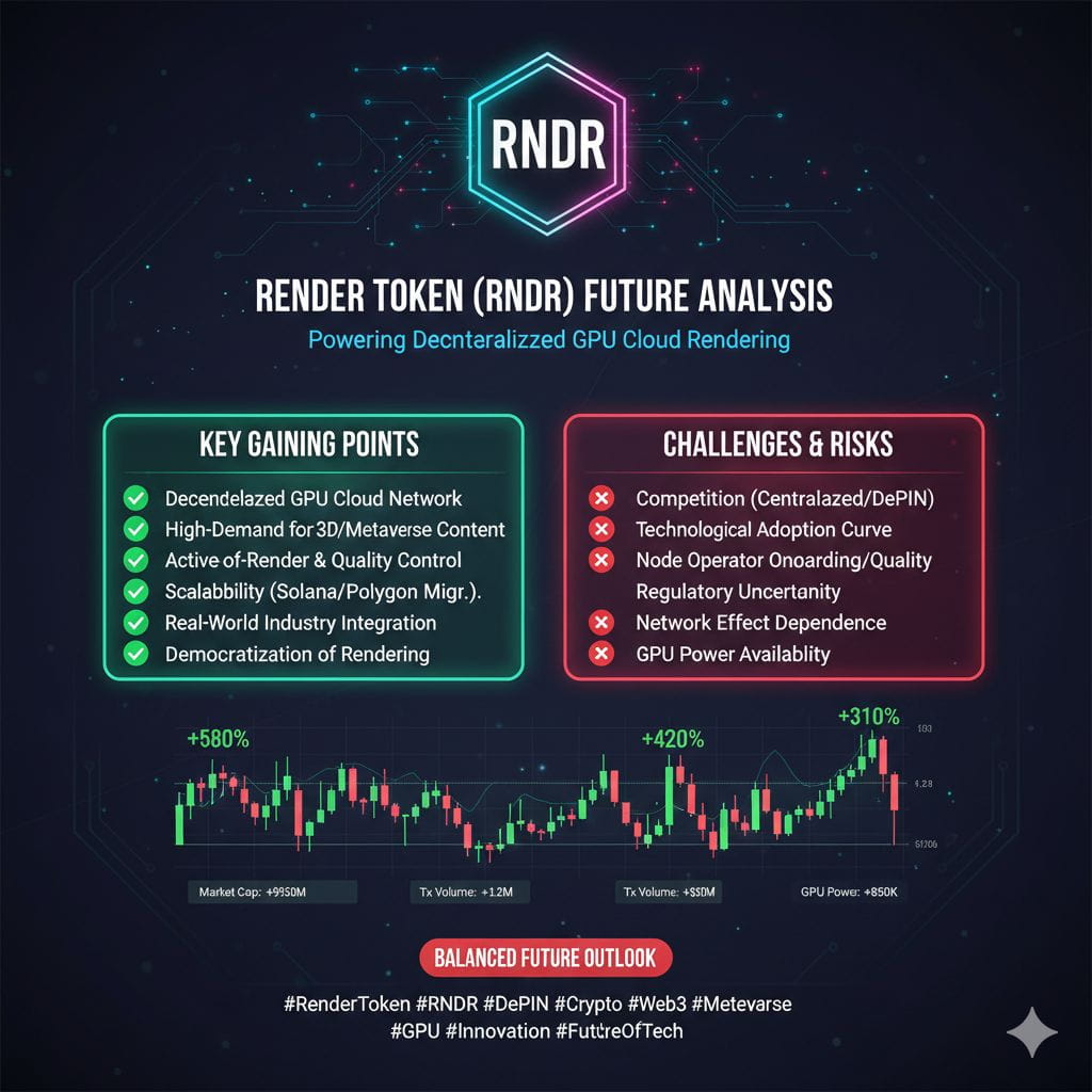Mit Blick auf die Zukunft ist die Zukunft von RENDER an die reale Akzeptanz dezentraler Rechenleistung gebunden. Wenn mehr Künstler, Studios und KI-Entwickler das Netzwerk für Rendering- und Verarbeitungsaufgaben wählen, könnte die Nachfrage nach RENDER stetig wachsen. Breiteres Interesse an Web3-Spielen, Metaverse-Inhalten und verteilten KI-Diensten könnte seinen Nutzen und langfristigen Wert weiter steigern.
