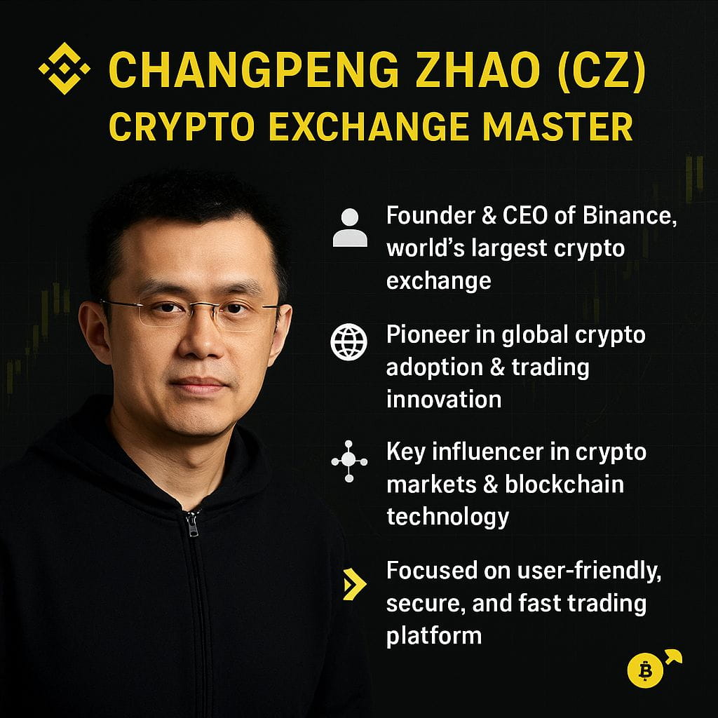 CZ, founder and CEO of Binance, is a global pioneer in crypto adoption and trading innovation. He shapes the crypto market with his leadership, focusing on secure, fast, and user-friendly trading platforms. His influence continues to drive blockchain technology forward.