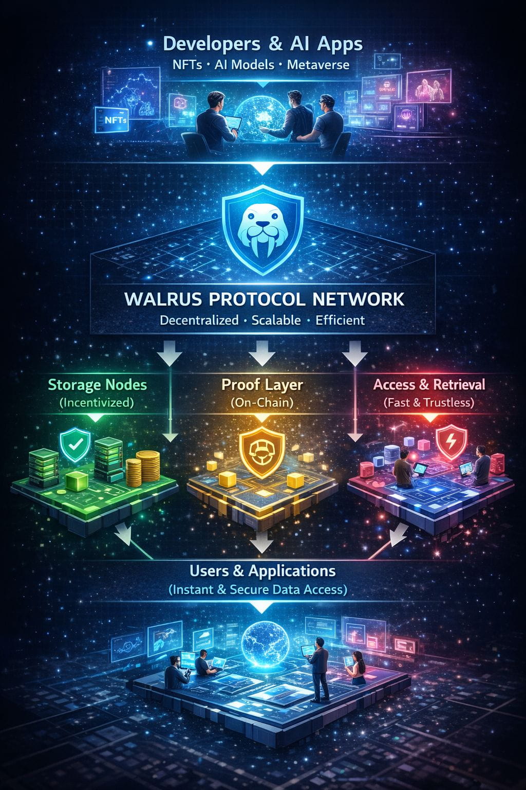 Walrus isn’t just about storing files it’s about enabling data driven applications. For AI models large datasets need fast reliable access; for metaverse projects digital assets require instant retrieval for NFT platforms metadata integrity is crucial. Walrus provides layered architecture that allows data to be stored, verified, and accessed efficiently all while remaining decentralized. This ensures developers don’t have to sacrifice performance for trustlessness.
