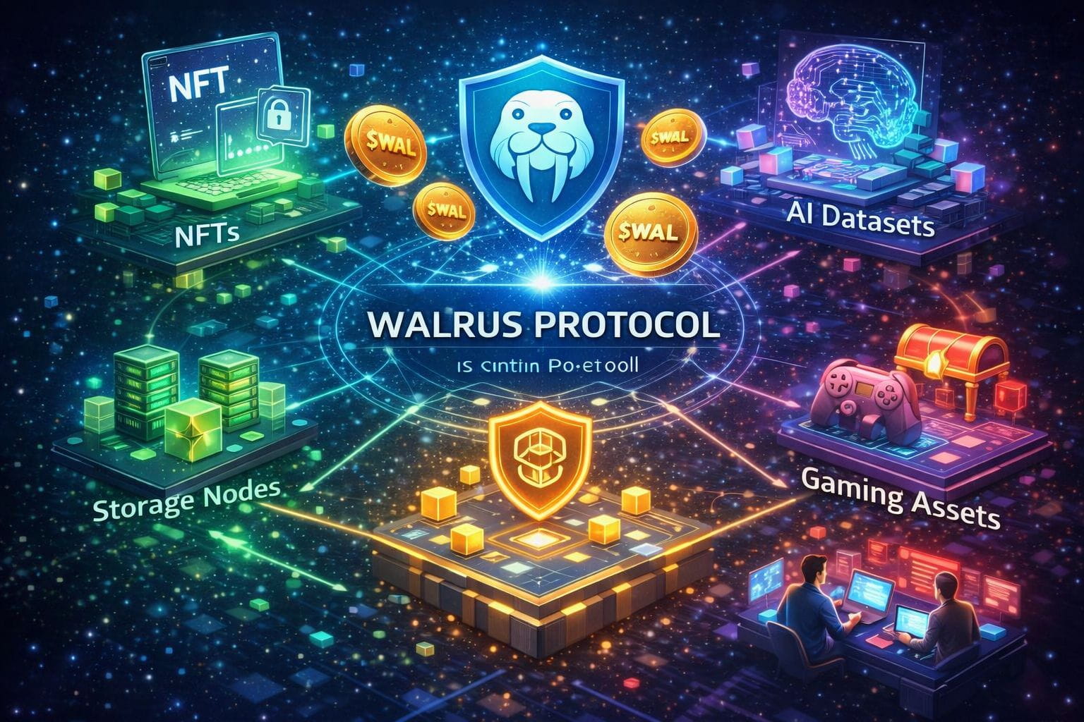 Walrus Protocol ecosystem: $WAL powers decentralized storage for NFTs AI datasets and gaming assets. Storage nodes proof layers and user access work together to ensure secure scalable and efficient data management.