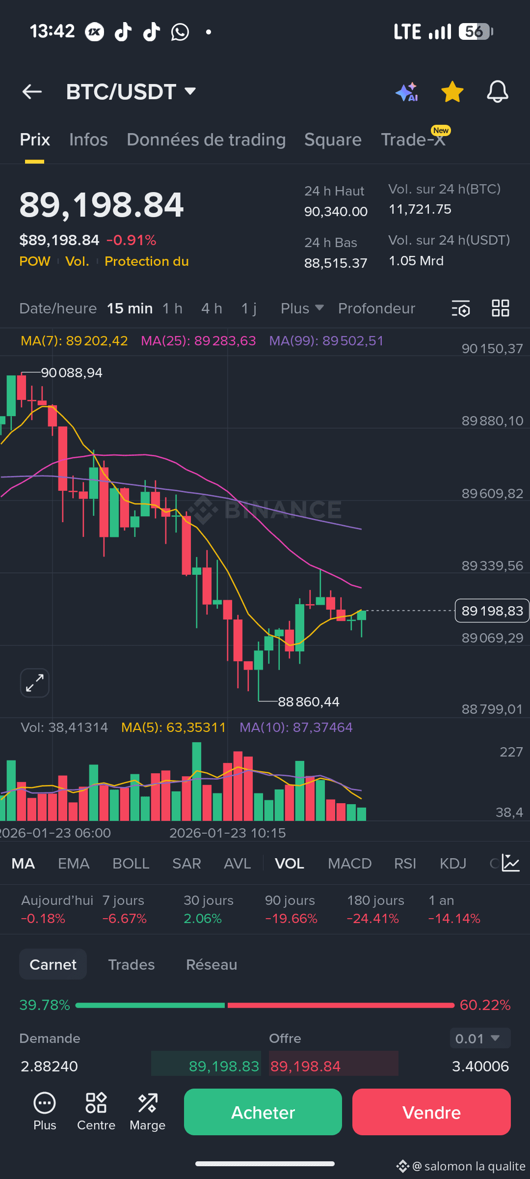Bitcoin reste la cryptomonnaie dominante, mais les prix ont montré une légère baisse ou une stagnation sur les dernières semaines, avec une tendance modérée en dessous des niveaux récents et des oscillations sans forte reprise haussière. $BTC BTC demeure leader malgré la volatilité.