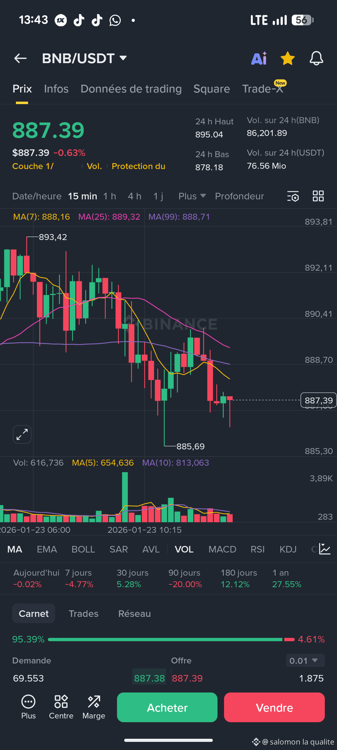 $BNB BNB, token natif de Binance, affiche une variation modérée positive sur un mois selon certaines sources, bien que la dynamique actuelle quotidienne montre de légères corrections. Son utilité sur l’écosystème Binance soutient sa stabilité relative.