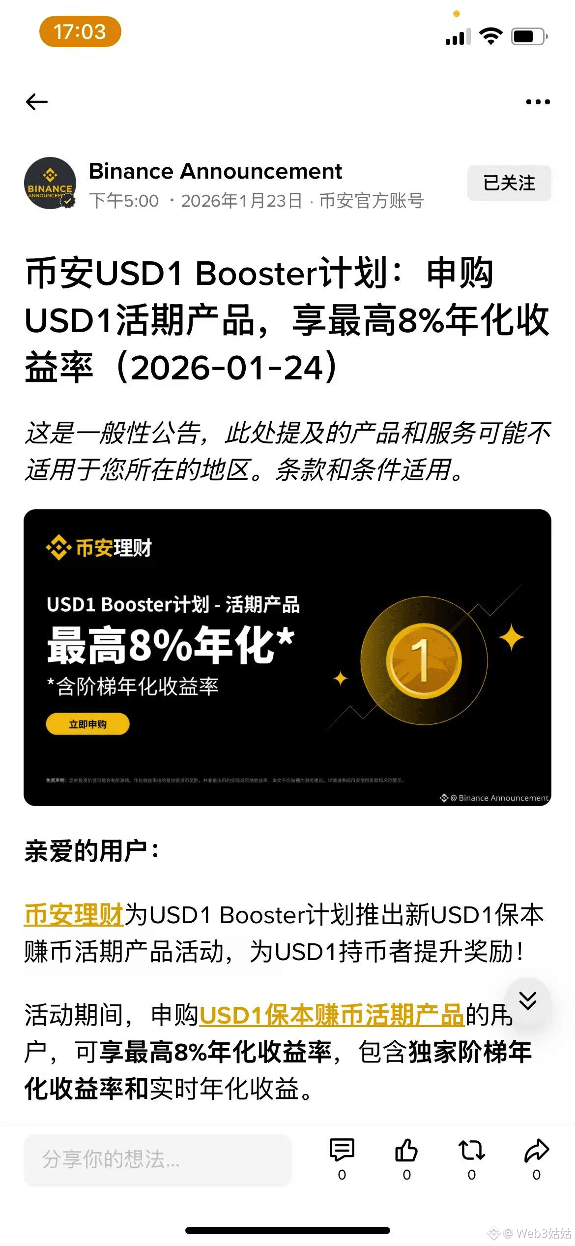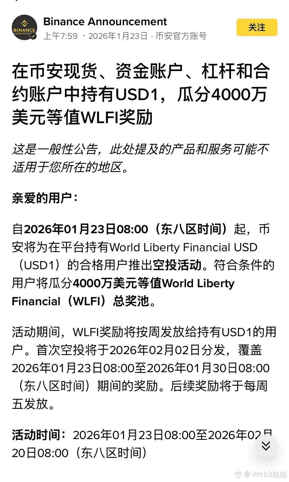 而币安这次围绕 USD1 的组合玩法,基本已经把答案写在公告里了。