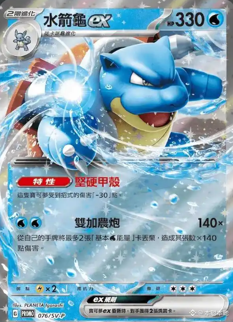 这张卡的特别之处在于,它从来没正式面向市场发行过!当年只是作为卡牌设计原型,用于内部测试和展会展示,存世量极少。卡上的水箭龟造型很独特,还承载着宝可梦TCG的发展历史,收藏和研究价值都极高,是资深藏家眼中的终极目标之一。