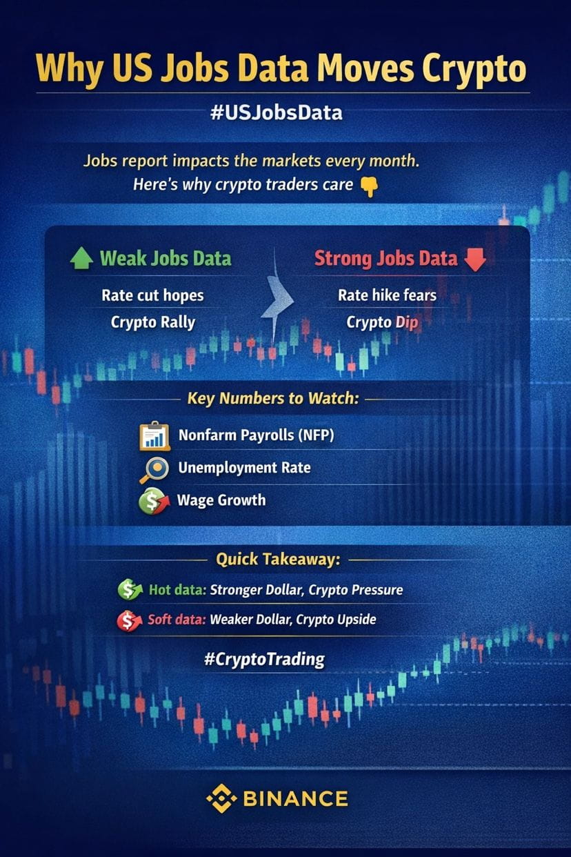 When job numbers come in strong, the market starts pricing in tighter policy, which can weigh on crypto.