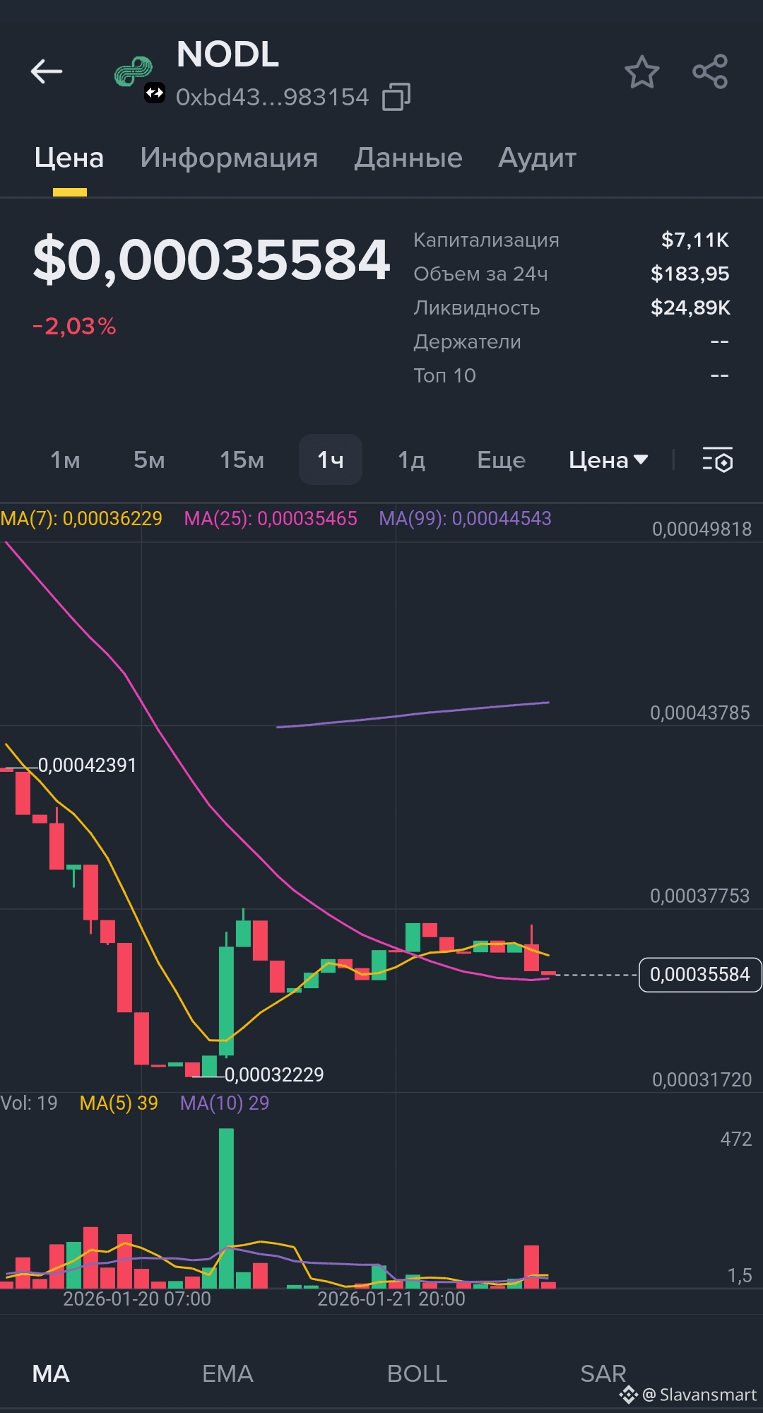 Это привело к увеличению 0.000171💲до предыдущего значения 0.000184💲. Тенденция к росту привлекла инвесторов к тому, чтобы обратить внимание на потенциальную прибыль, которую можно получить, инвестируя в NODL.