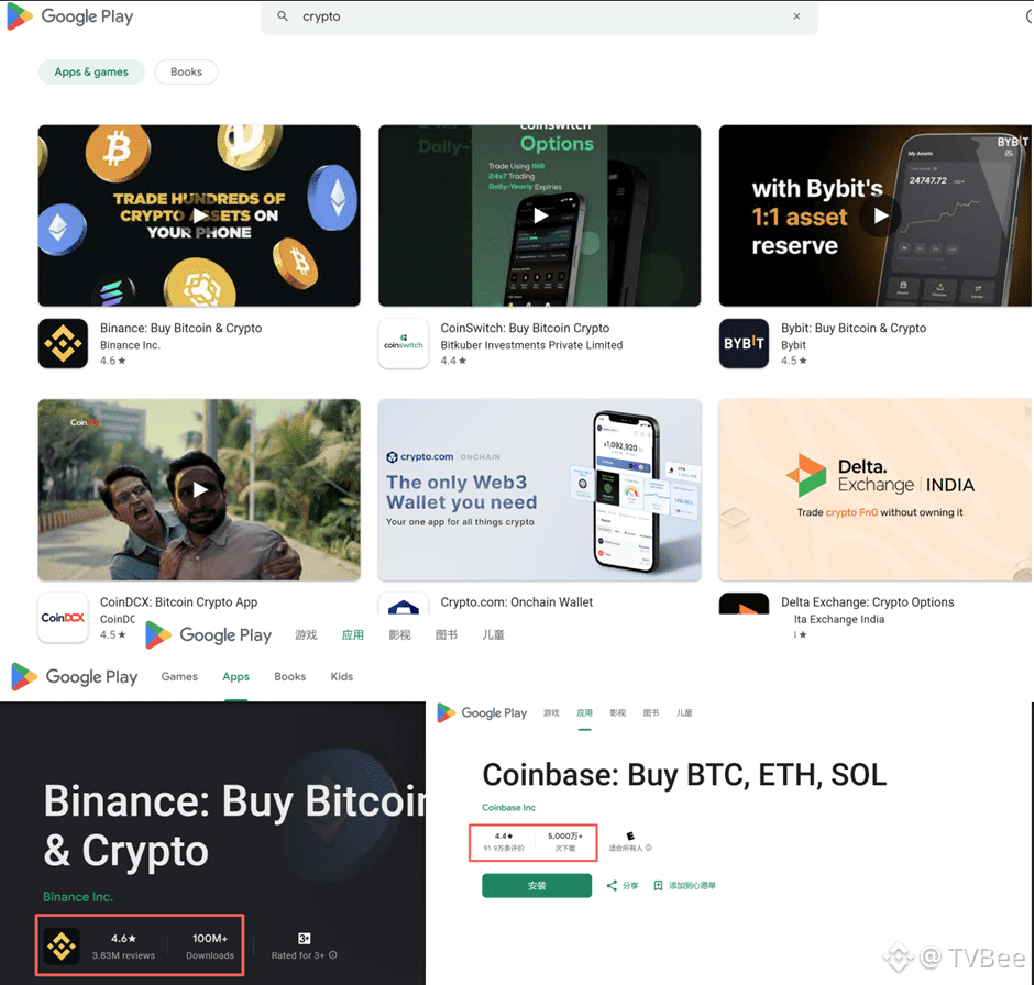 谷歌与苹果数据显示,币安是最受市场欢迎、用户活跃度最高、口碑最佳的加密应用。