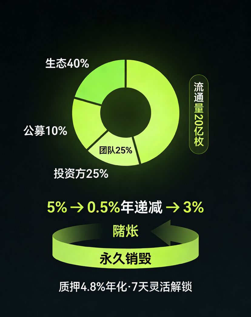 Die eingehende Untersuchung des Token-Ökonomiemodells von XPL war der Schlüssel zu meiner Entscheidung, den Großteil meines Kapitals zu migrieren und stark in XPL zu investieren, und auch der Grund, warum ich die größte Risikostelle dieses Projekts in der aktuellen Phase entdeckte. Ich habe in diesem Bereich viel Mühe investiert und das Whitepaper dreimal durchgearbeitet sowie unzählige Male die Datenplattform der Chain überprüft, aus Angst, wichtige Informationen zu übersehen, denn ich investiere echtes Geld und kann mich nicht nur auf mein Gefühl verlassen. Die Gesamtversorgung von XPL beträgt 10 Milliarden Tokens, und die Verteilungsquote ist besonders klar und eindeutig: 40% für das Ökosystem und Wachstum, 10% für den öffentlichen Verkauf, das Team und frühe Investoren jeweils 25%. Allein aufgrund dieser Verteilung finde ich es sehr vertrauenswürdig, dass der Anteil von Ökosystem und Wachstum am höchsten ist, was zeigt, dass das Projektteam nicht vorhat, mit Tokens zu flüchten, sondern wirklich das Ökosystem aufbauen möchte, um die Grundlage für diese Stablecoin-exklusive Chain zu festigen.