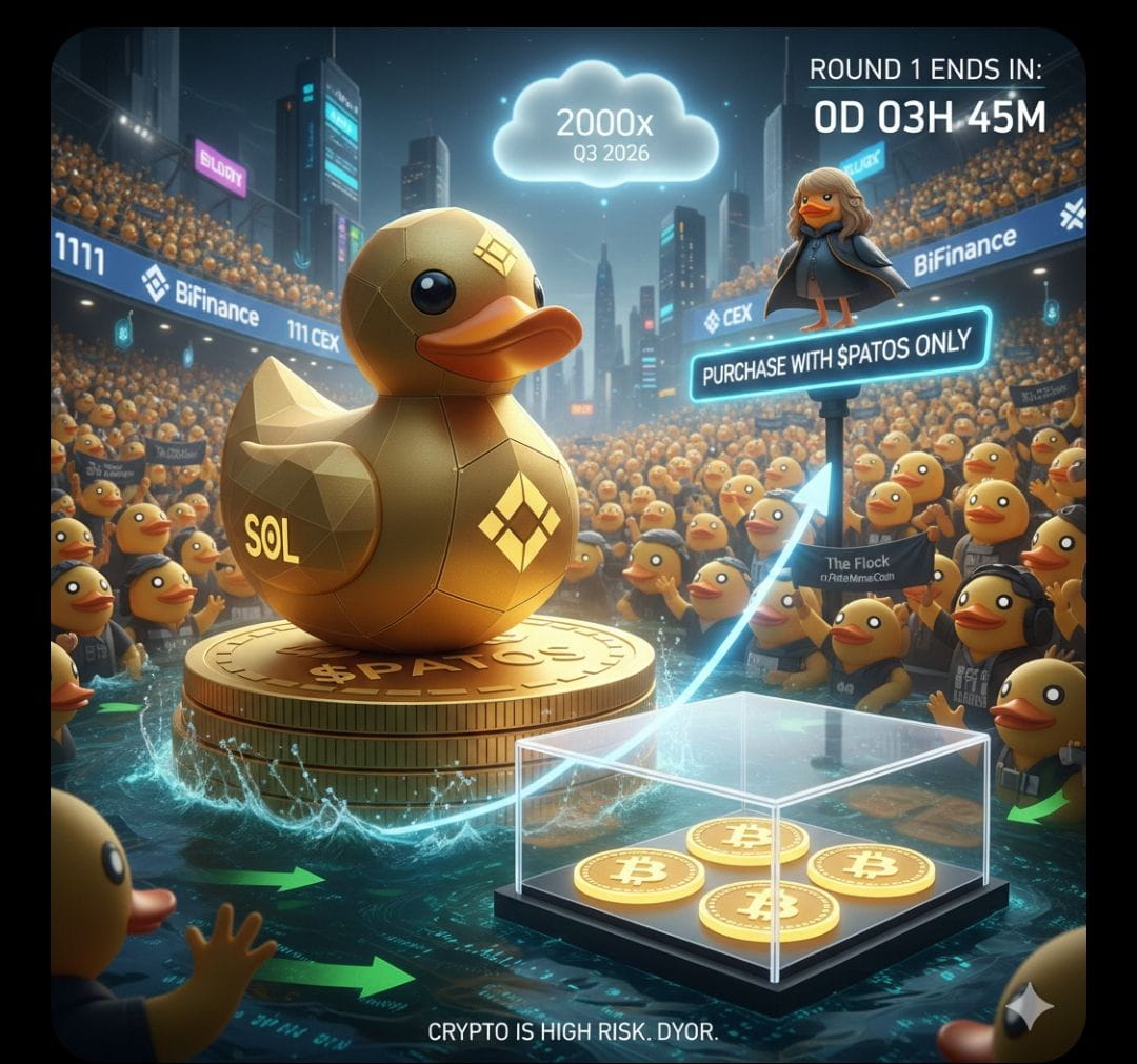 Patos isn’t just a token — it’s building a movement called “The Flock.” Its official subreddit, r/PatosMemeCoin, is racing toward 10,000 highly engaged members, showing organic growth, coordination, and loyalty — something most meme projects never achieve.