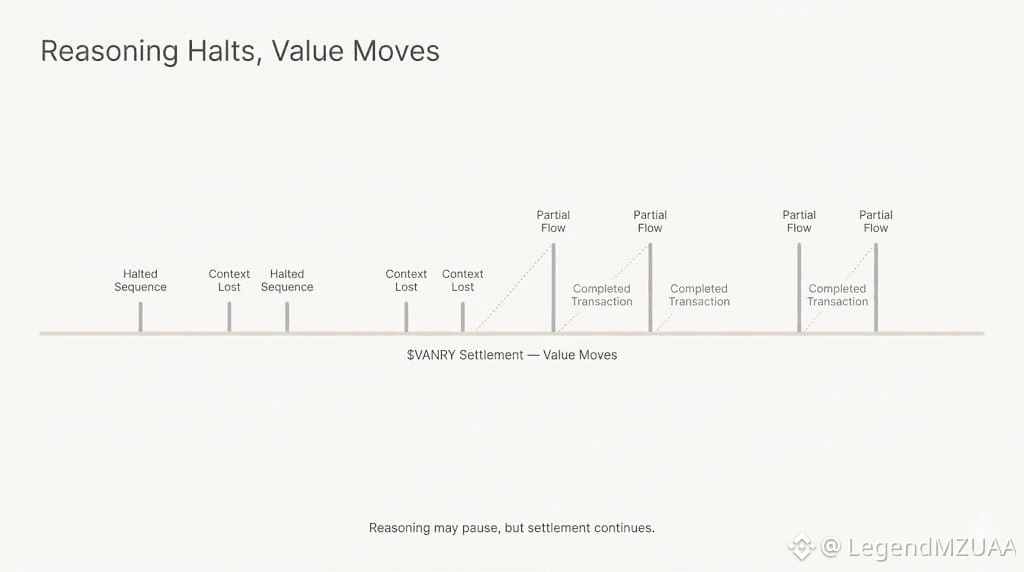 $VANRY persists. Settlements move through Vanar rails regardless. Reasoning falters; the token carries value. Micro-failures, incomplete Flows, context dropped mid-sequence, $VANRY bridges the gaps. Real value moves even when the reasoning stack refuses compromise. That’s the boundary. That’s the system.