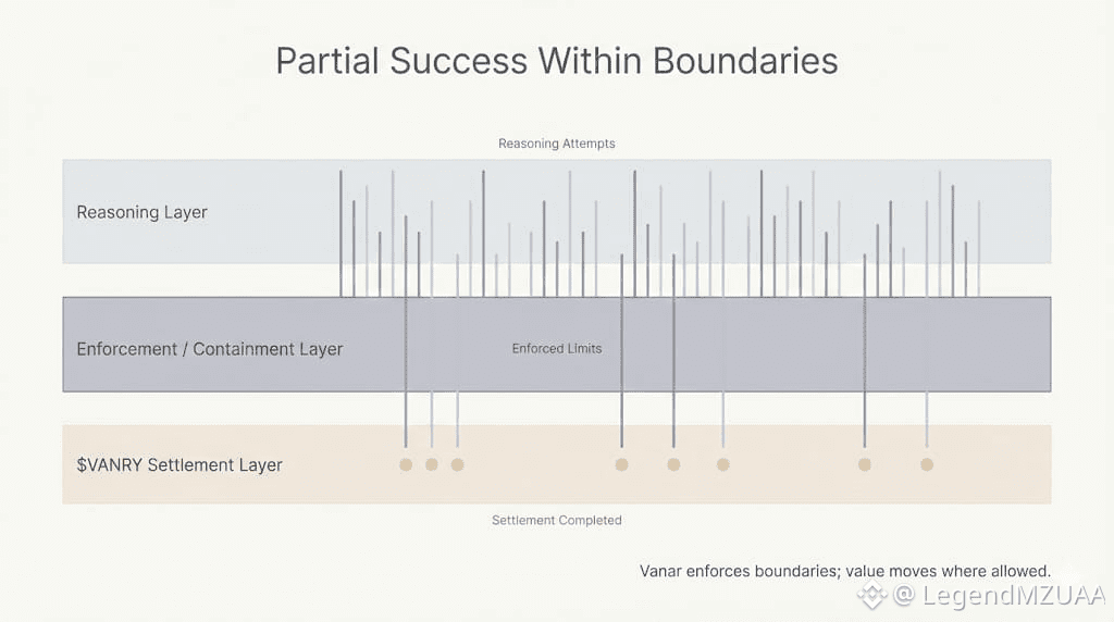 It looks perfect… until a decision disappears. Nothing stops it. Nothing fixes it automatically. The rails contain failures, not resolve them. $VANRY continues. Reasoning stays bounded. Flows persist. Partial outputs hang. Micro-friction pulses quietly.
