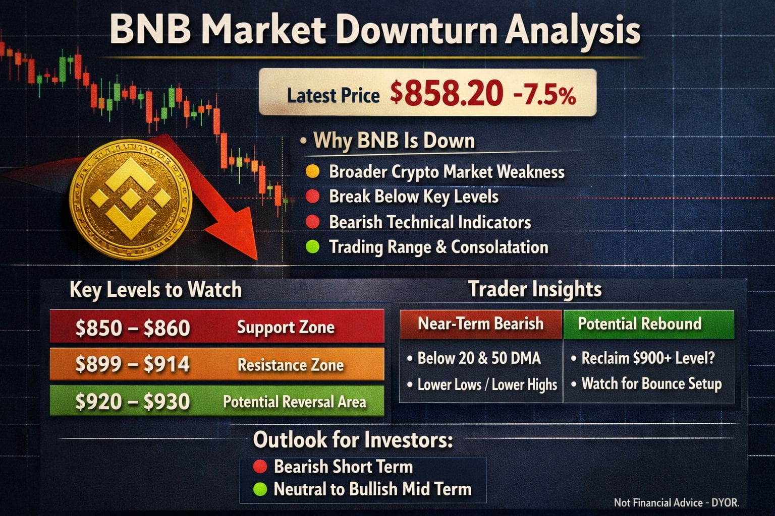 Core takeaway: $BNB BNB is trading down recently, reflecting broader crypto market weakness and specific technical pressure.