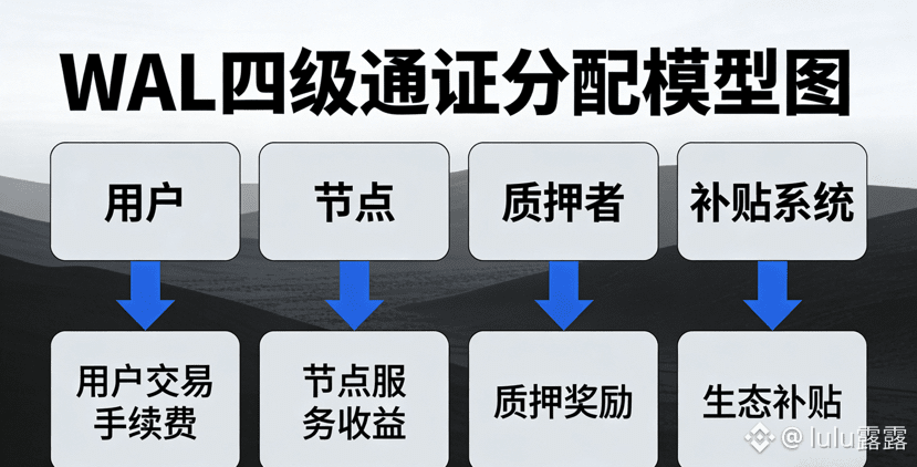 如果说Move合约和Red Stuff编码是WAL的技术骨架,那通证经济的数学模型就是它的血液,我实测后发现,Walrus的WAL代币分配不是简单的“奖励-质押”模式,而是一套包含用户、节点、质押者、补贴系统的四级分配数学闭环,每一笔存储费用的流动都有明确的公式支撑,这让整个网络的激励机制变得可测算、可调控。Walrus设计了四套核心的经济分配公式,用户实际支付价格User_Price=Storage_Price×(1-Subsidy_Rate),节点佣金收入Node_Revenue=Storage_Price×(1+Subsidy_Rate)×Commission,质押者实际收益Staker_Revenue=Storage_Price×(1+Subsidy_Rate)×(1-Commission),补贴系统的差额支付Subsidy_Payment=Storage_Price×2×Subsidy_Rate,这四套公式把早期网络的补贴成本、节点的运营收益、质押者的持币收益做了精准平衡,我以当前网络默认的15%补贴率、20%节点佣金做了实测,当存储价格为0.06WAL/MB时,用户实际支付仅0.051WAL/MB,节点每MB能获得0.0186WAL佣金,质押者能获得0.0744WAL收益,补贴系统每MB补贴0.018WAL,既降低了用户的使用成本,又保证了节点和质押者的收益,实现了三方共赢。同时,WAL的质押奖励并非单纯按质押量分配,而是采用“质押量×性能系数”的权重计算,我分别用10万、50万、100万WAL做了委托质押测试,当10万WAL的节点性能系数为1.2、50万WAL为1.1、100万WAL为0.8时,10万WAL的单纪元收益为326WAL,50万WAL为1405WAL,100万WAL仅为1920WAL,折算下来10万WAL的单位收益是100万WAL的2.1倍,这也印证了Walrus的激励核心是节点性能,而非单纯的质押量堆砌。我还实测了存储数据量与纪元奖励的关系,发现奖励与存储量呈严格的线性正相关,存储10TB数据的节点纪元奖励比5TB高98%,这也激励节点不断提升存储利用率,而非单纯质押代币躺赚。