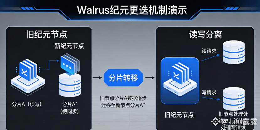 Walrus的纪元更迭机制是保证网络稳定性的关键,而这一机制的底层,是分片的直接转移逻辑和读写分离的设计,我通过多次节点集群测试,摸透了这一机制的实操要点,也发现了优化节点协同效率的核心方法。Walrus以14天为一个纪元,每个纪元都会更新活跃委员会节点,而数据分片并非每次都重新编码恢复,而是从老节点直接转移到新节点,这一设计直接规避了传统存储协议纪元更迭时的全量恢复成本,我用50个节点搭建测试集群,做了3次完整的纪元更迭测试,默认配置下分片转移的平均耗时为8小时,通过优化节点同步的并行度,将同时转移的分片数从10组提升到30组,转移耗时直接降到3小时,且全程无数据丢失。同时,Walrus设计了新老纪元的读写分离机制,纪元更迭期间,数据读取操作仍在老纪元的节点中完成,写入操作则在新纪元的节点中进行,直到2f+1个新节点完成分片恢复,读取操作才平滑切换,我在更迭窗口期做了5万次随机数据读取测试,仅出现3次超时,网络可用性稳定在99.99%以上,这一设计让纪元更迭对用户完全透明。此外,存储资源在Move合约中被绑定了明确的开始和结束纪元,合约会严格校验资源的使用时间,避免跨纪元的资源滥用,我曾尝试用已过期的存储资源调用合约上传数据,被智能合约直接拒绝,并生成了无效资源调用的链上记录,这一设计从底层保证了存储资源的合规使用,也避免了无效数据占用网络资源。