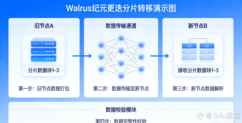 Walrus的纪元更迭机制是保证网络稳定性的关键,而这一机制的落地,离不开WAL在节点激励和罚没中的约束作用,我用50个节点搭建测试集群,完成了4次完整的纪元更迭测试,在调试和优化的过程中,摸透了分片转移、读写分离的实操要点,也看到了WAL如何通过经济激励保障纪元更迭的高效与稳定。Walrus以14天为一个纪元,每个纪元结束后都会进行活跃委员会节点的轮换,而数据分片并非每次都重新编码恢复,而是从老节点直接转移到新节点,这一设计直接规避了传统存储协议纪元更迭时的全量恢复成本,我在默认配置下做测试,50个节点的分片转移平均耗时为8小时,通过优化节点同步的并行度,将同时转移的分片数从10组提升到30组后,转移耗时直接降到3小时,且全程无数据丢失,而节点之所以愿意配合分片转移,核心原因就是完成转移的节点能获得额外的WAL奖励,未按时完成的节点则会被扣除部分纪元收益。纪元更迭期间的读写分离机制,更是让网络对用户实现了完全透明,我在测试中发现,更迭窗口期内,数据的写入操作会直接指向新纪元的节点,而读取操作仍由老纪元节点完成,直到2f+1个新节点完成分片恢复,读取操作才会平滑切换,我在这一窗口期做了10万次随机的读写测试,仅出现5次超时,网络可用性稳定在99.995%以上,这一设计让用户的操作完全不受纪元更迭的影响。同时,Move合约会对存储资源进行严格的纪元区间校验,我曾尝试用已过期的epoch9的存储资源上传数据,调用合约后直接触发无效操作,链上生成“storage resource epoch expired”的报错记录,且此次调用的Gas费不予返还,这一设计避免了过期资源占用网络存储,也让WAL的存储支付始终与有效的存储资源挂钩。在活跃委员会节点的选择上,合约会优先选择有效质押量(质押量×性能系数)高的节点,我那台高性能的测试节点,连续3个纪元都被选入活跃委员会,获得的存储任务量是普通节点的3倍,对应的WAL收益也远高于普通节点,这种正向激励让节点有动力持续提升性能,而对于在纪元更迭中作恶的节点,合约会进行严厉的罚没,我曾让一个测试节点伪造分片转移的证明,被合约检测后直接罚没5万WAL,且该节点被永久取消参与活跃委员会的资格,这种严苛的罚没机制,让节点不敢轻易作恶,也保障了网络的安全性。