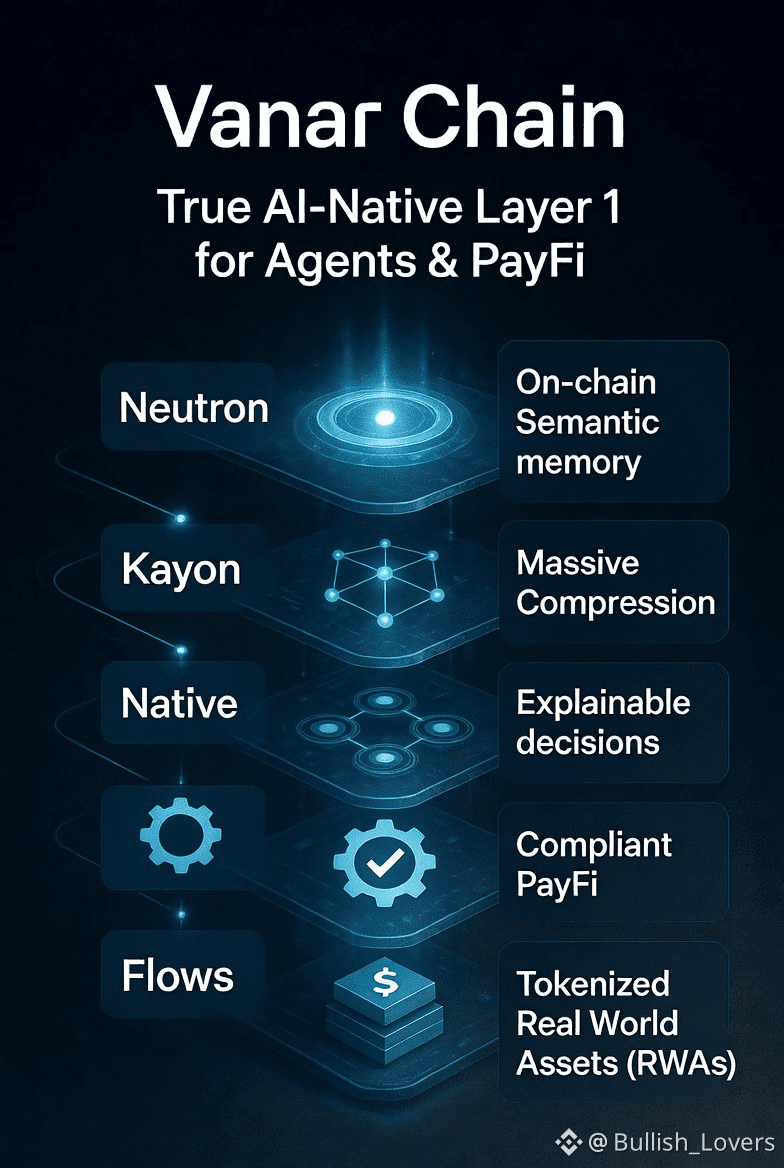 This isn't hype; it's proven with live products powering PayFi (tokenized real-world assets with built-in compliance), on-chain gaming, and AI-driven apps that scale without compromises. Unlike retrofitted chains chasing TPS numbers, Vanar prioritizes what AI truly needs: persistent memory, verifiable reasoning, and seamless global settlement.