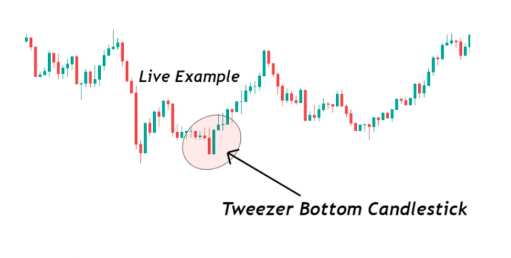 Tweezer Bottom ist ein bullisches Muster. Dieses Muster entsteht, wenn nach einem längeren Bärenmarkt die Verkäufer den Preis nach unten drücken, aber am Ende der Sitzung nicht in der Lage sind, den Preis unten zu halten.