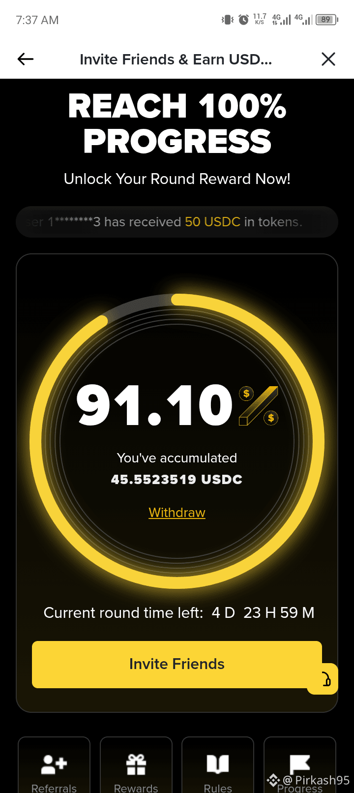 I’m excited to share that my Binance Referral Program progress has reached 91%, with only 9% remaining to achieve 100% completion.
