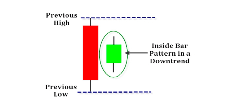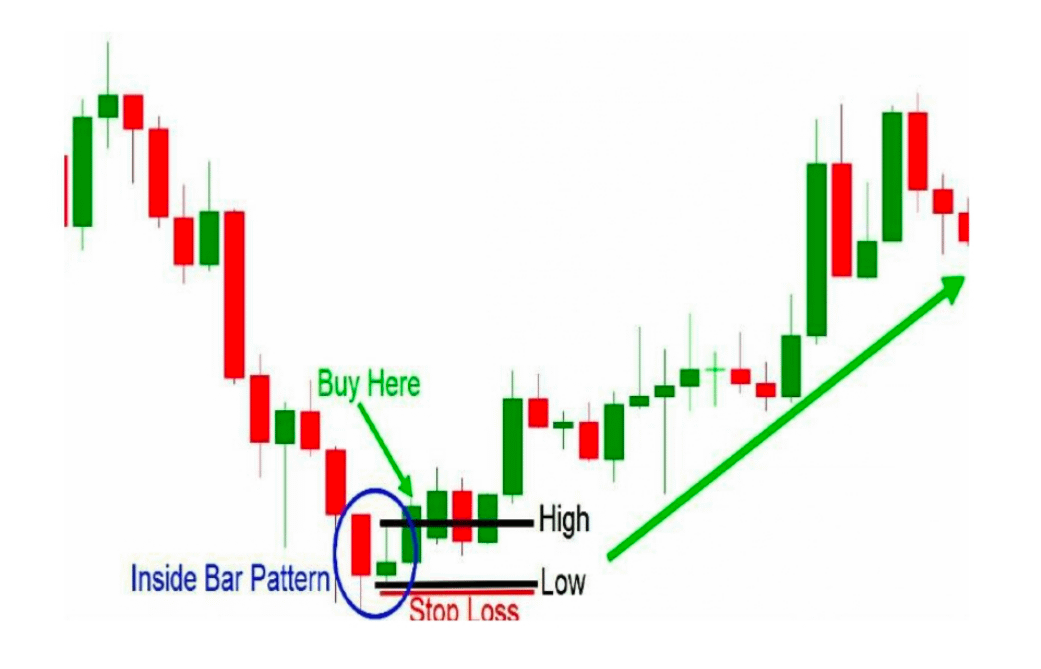 Ein Inside-Bar-Chart-Muster ist in einer größeren Kerze enthalten, einige nennen es eine Mutterkerze. Dieses Muster bildet sich nach einer großen Marktbewegung und stellt eine Phase der Konsolidierung dar, wobei die nächste Kerze bullisch ist.
