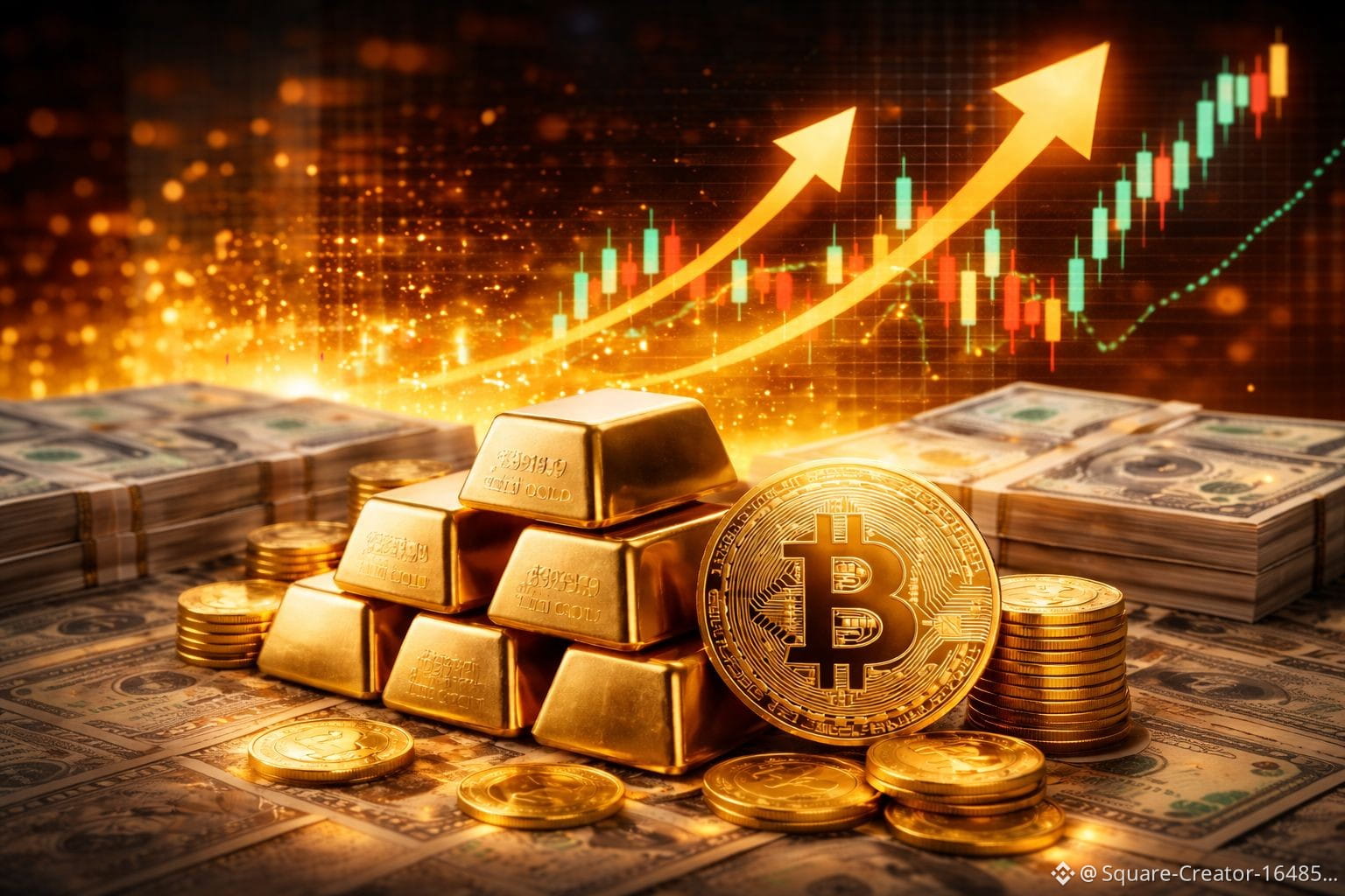 العملات الرقمية، وعلى رأسها $BTC ، غالبًا ما تتحرك بنفس منطق الذهب في بيئة: