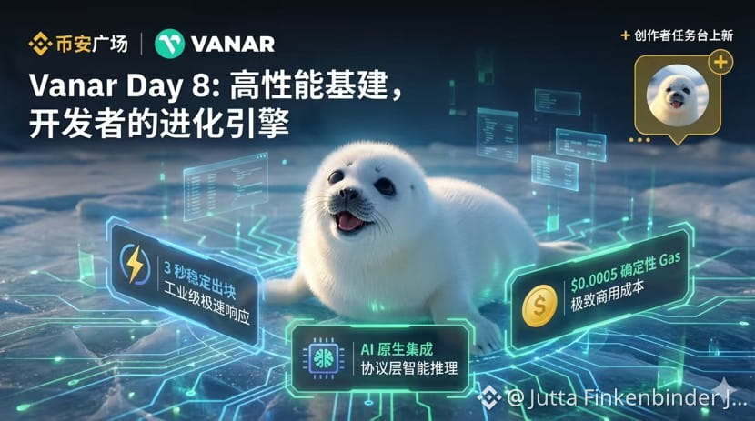 回到 @undefined 的架构。很多开发者在传统公链上会遇到严重的“创新摩擦”,即因为网络拥堵或 Gas 暴涨导致的代谢故障。Vanar 凭借其优化的 L1 架构,实现了 3 秒一个区块 的稳定产出。这种 3 秒的稳定性是工业级的,它让构建沉浸式游戏或高频交互 AI 应用的开发者不再需要为了处理交易延迟而编写冗余的补偿代码。