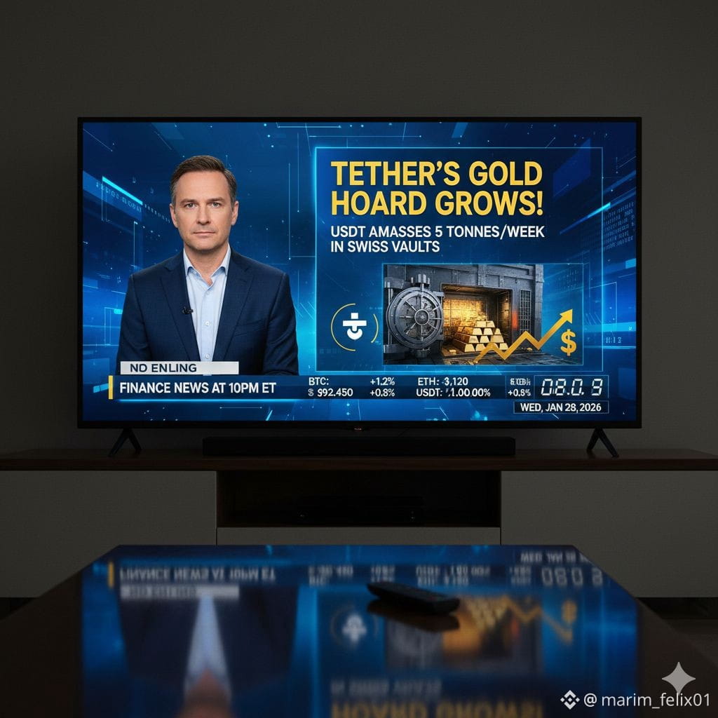 VocĂȘs viram essa? Enquanto a gente discute se o Bitcoin vai romper os $100k, a Tether ($USDT) estĂĄ fazendo compras de mercado em uma escala absurda. Eles acabaram de revelar que estĂŁo guardando cerca de 140 toneladas de ouro em um bunker na SuĂça!
