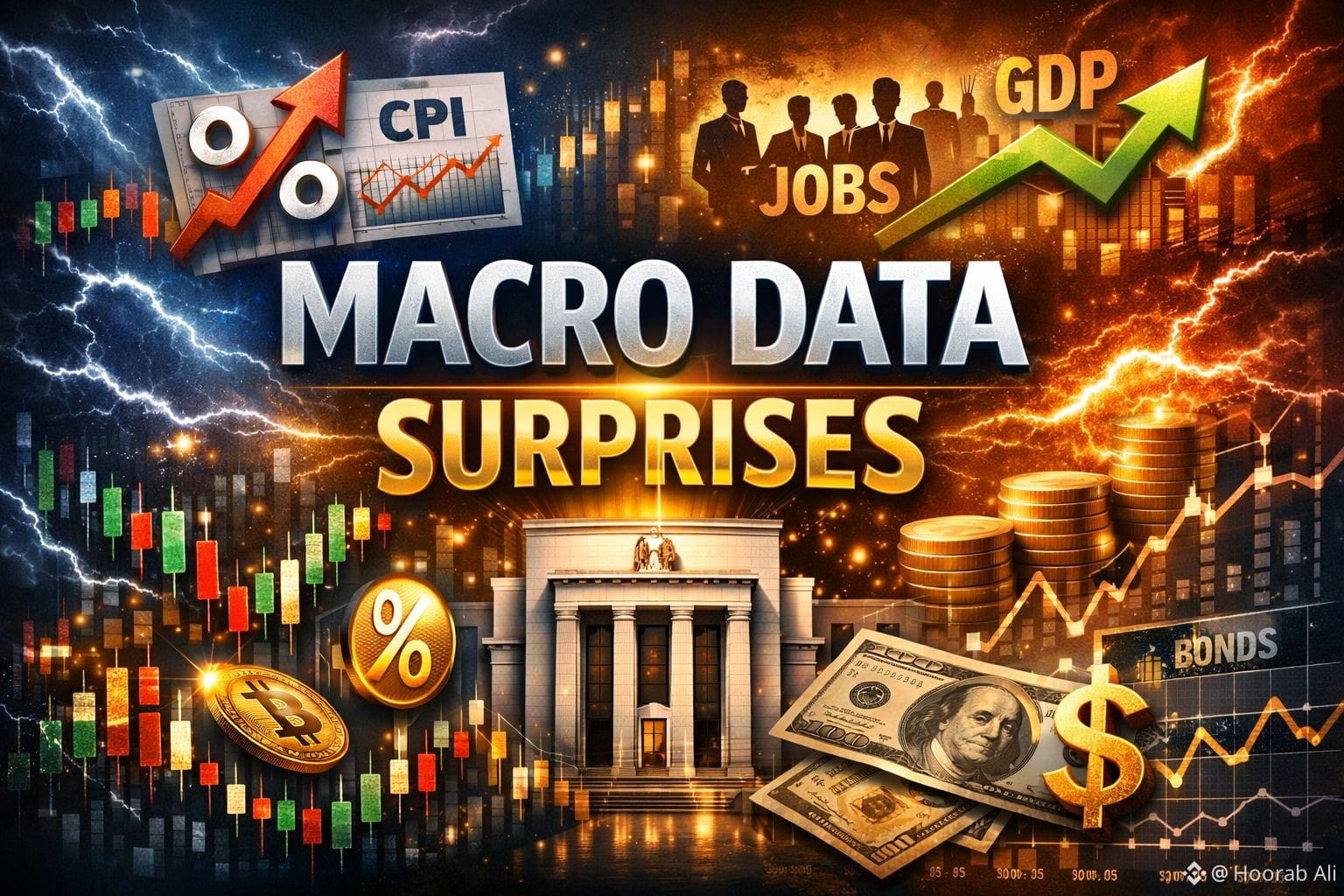 financial markets by influencing investor expectations, sentiment, and asset allocation decisions. A macro data surprise occurs when important economic indicators such as inflation, employment figures, GDP growth, retail sales, or central bank guidance differ from market forecasts. Stronger-than-expected data often signals economic resilience, prompting investors to price in tighter monetary policy or delayed interest-rate cuts, which can strengthen the US dollar, push bond yields higher, and create short-term pressure on gold and other non-yielding assets. On the other hand, weaker-than-expected data may raise fears of an economic slowdown or recession, increasing demand for safe-haven assets like gold while weighing on equities and risk-sensitive currencies. Inflation data remains especially influential, as unexpected increases can revive concerns about prolonged high interest rates, while softer readings may fuel optimism around policy easing. Labor market surprises, including sudden changes in job creation or wage growth, can also rapidly shift market sentiment. In today’s highly data-driven environment, traders and investors closely monitor economic releases and react quickly, often leading to sharp volatility, temporary corrections, and changes in market trends. As a result, macro data surprises have become one of the most important short-term drivers of global financial markets.