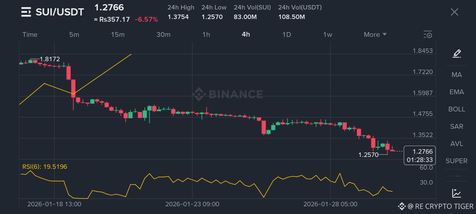 ​SUI is currently trading around $1.27, down roughly 6.5%.