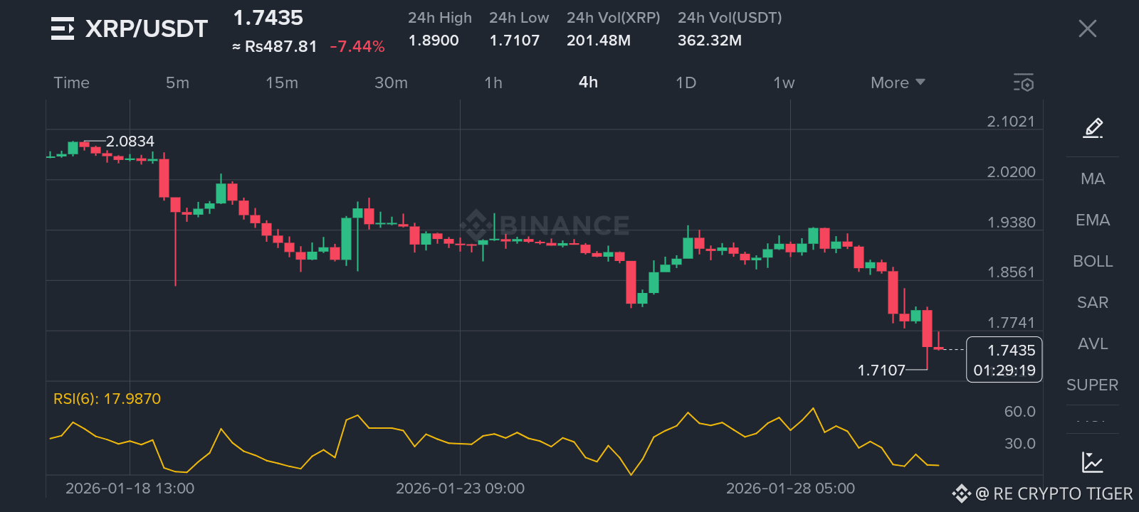 • Outlook: XRP is showing a classic "oversold" signature. The $1.70 - $1.72 zone is a critical psychological support. If it holds, we might see a fast recovery toward the $1.85 resistance.