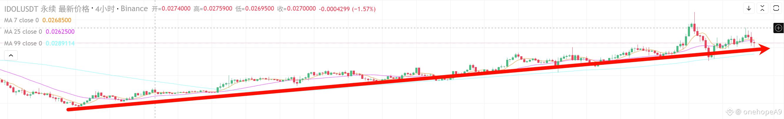 晚上给 idol画了下线,很稳,一路向上,蹲个小回调,就上车了。