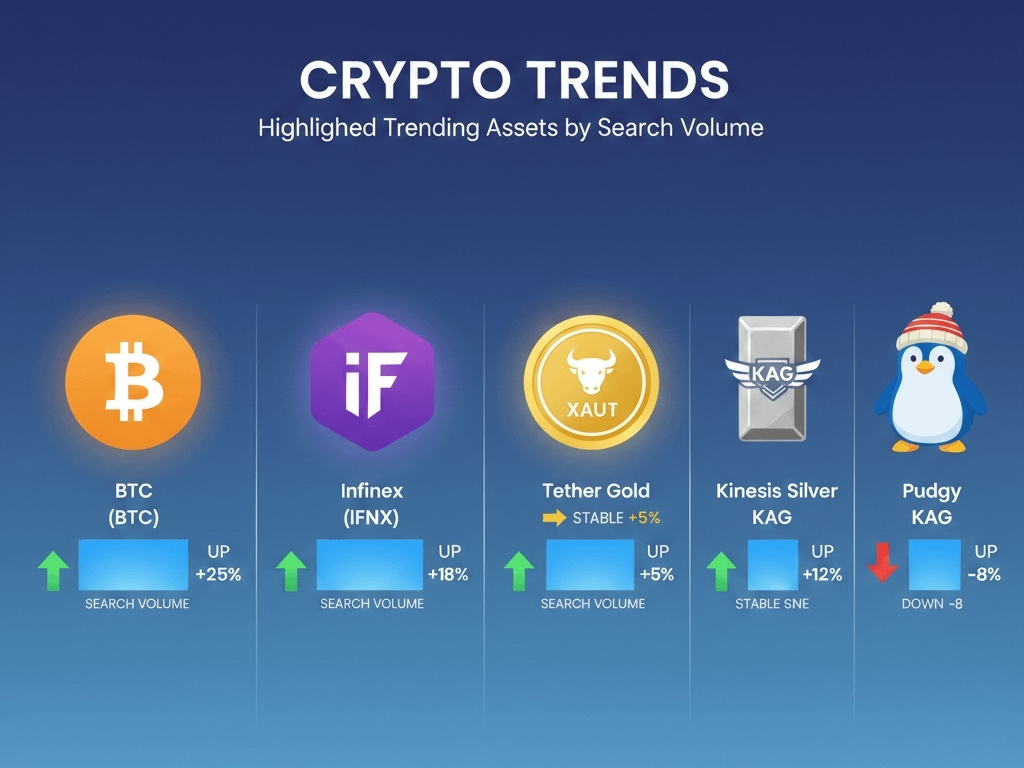 Laut CoinGecko’s Trendübersicht gehören einige der am häufigsten gesuchten Kryptowährungen heute zu Infinex (INX), Tether Gold (XAUT) und Kinesis Silver (KAG) – neben zeitlosen Favoriten wie Bitcoin (BTC) und thematischen Tokens wie Pudgy Penguins (PENGU). Diese Trendliste basiert auf dem Suchvolumen und zeigt, welche digitalen Vermögenswerte den Blick der Benutzer in den letzten Stunden auf sich ziehen.