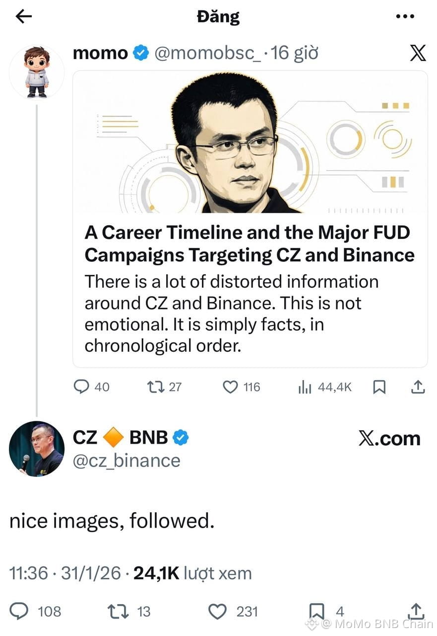 2️⃣ CZ follow Main X (Twitter) → kích hoạt “attention loop”