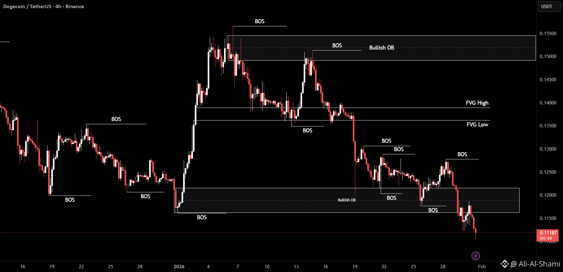 بعد 10 أكتوبر، كانت DogeUSDT تنخفض فقط وتنخفض وتنخفض! كما ترى، تفاعلت مع OB الصاعد عدة مرات، لكنها عادت إليه في كل مرة مثل المغناطيس. يتم تداولها حالياً عند 0.11160، ولا أرى أي إشارة لزيادة صعودية في الوقت الحالي.