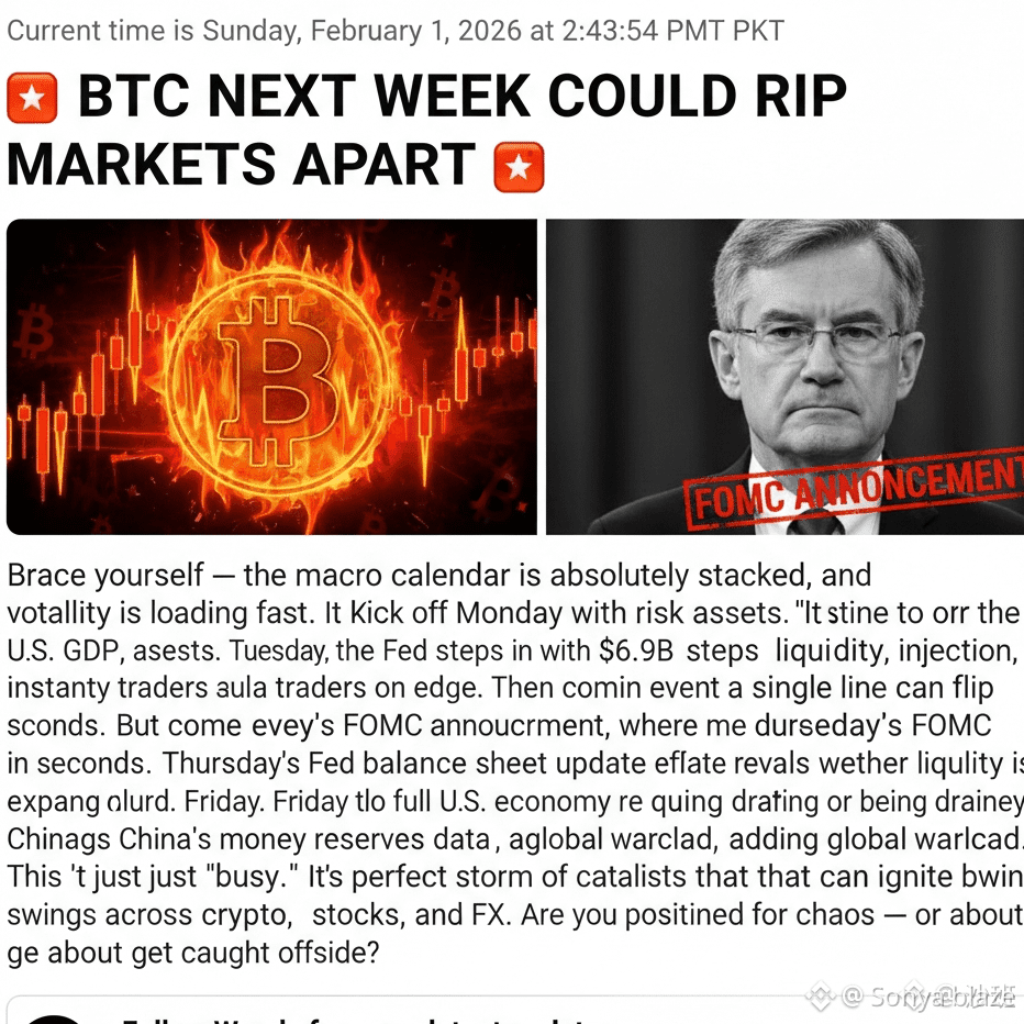 If you think BTC moves on “crypto news,” next week will remind you who really drives the tape: macro prints, labor data, and central-bank plumbing. The setup is nasty because the catalysts are spread across the week — meaning volatility can reset every 24 hours instead of “one big day.”