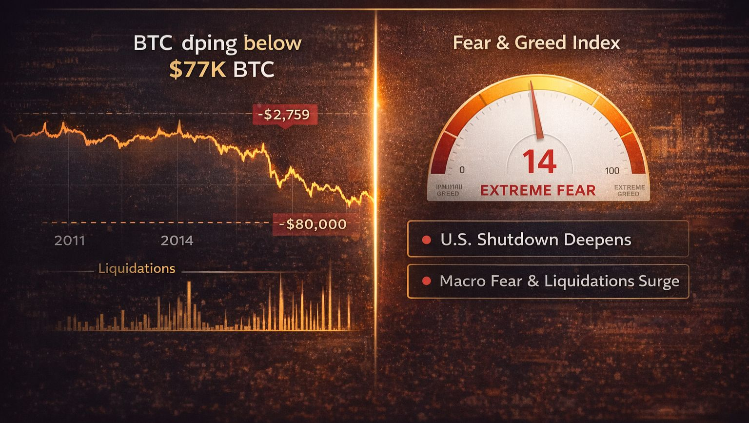 Right now, it's early February, … BTC is clinging around $77K–$78K after that brutal weekend slide below $80K. The charts look like a horror movie, liquidations keep ticking higher, the U.S. shutdown headlines won't quit, and the Fear & Greed Index is sitting at a screaming Extreme Fear level (14–15 range).
