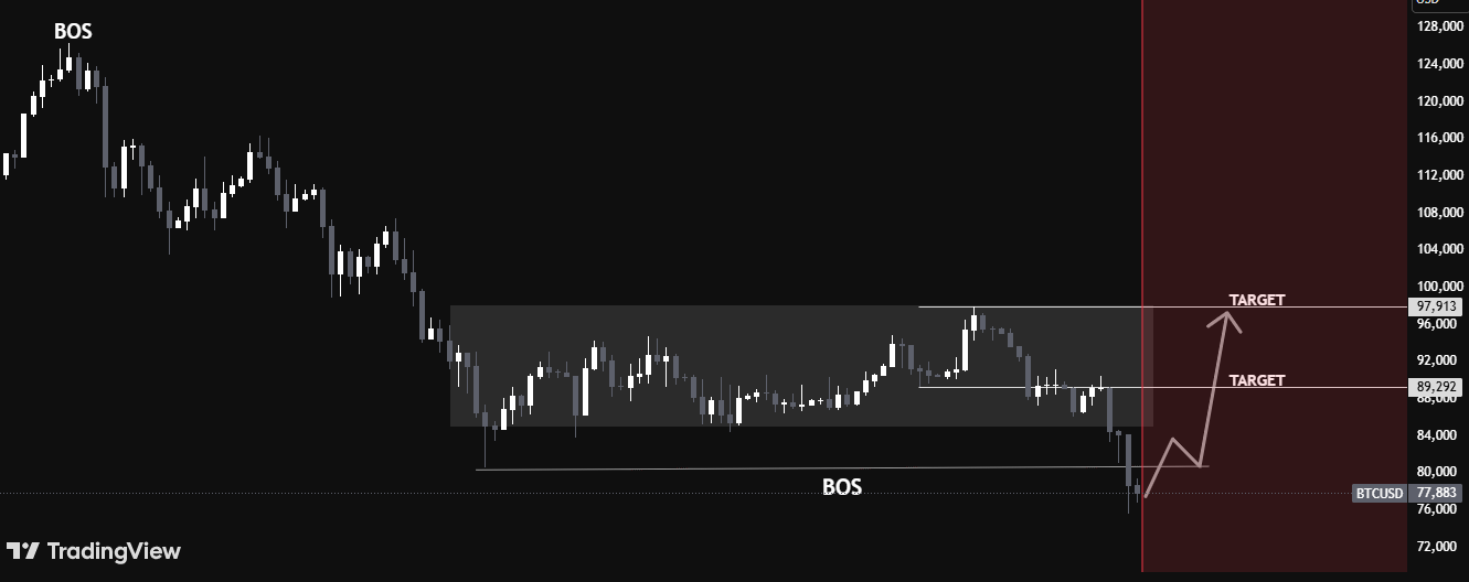 Die untenstehende Aufschlüsselung von $76,800 ist eine kritische technische Bestätigung dieses Drucks.