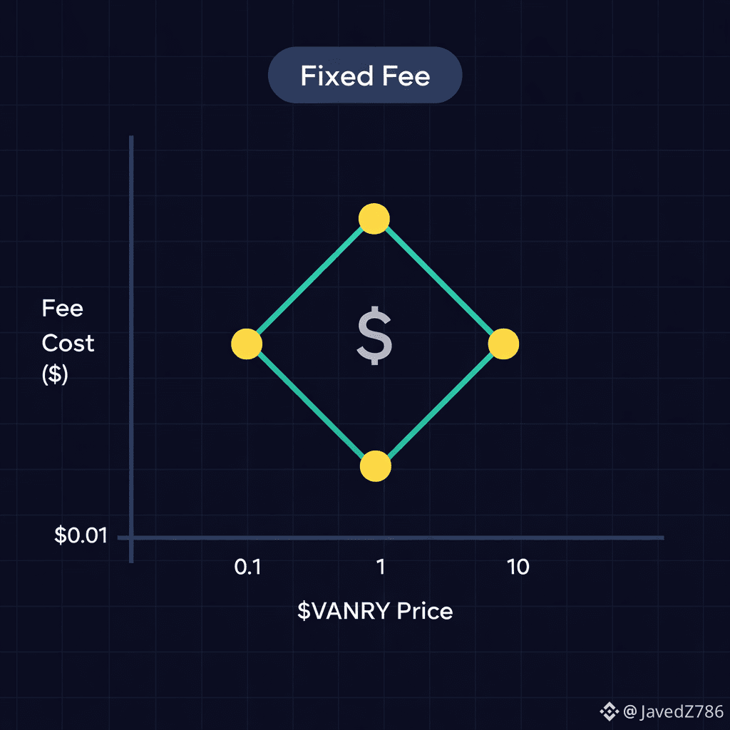 Hey everyone on Binance Square! Today I want talk about something very smart in I explain in super simple words because my English not perfect, but I try my best. I read this from official website vanar.io and their whitepaper. All my own words ok, no copy paste.First, what is Vanar Chain? Vanar is a Layer 1 blockchain made for gaming, metaverse, AI, entertainment and big Web3 stuff. It very fast, super low fees, and most important – it is carbon-neutral (no hurt to planet). They use green tech and proof-of-stake so no big electricity waste like some old chains.Now main point – fees in Vanar. In many blockchains like Ethereum, when token price go very high, gas fees also become crazy expensive. Like if ETH is $5000, small transaction can cost $20-50 or more. This very bad for normal people and especially for games where you do hundreds of small actions every minute. Who want pay so much just to move NFT or play?But @vanar