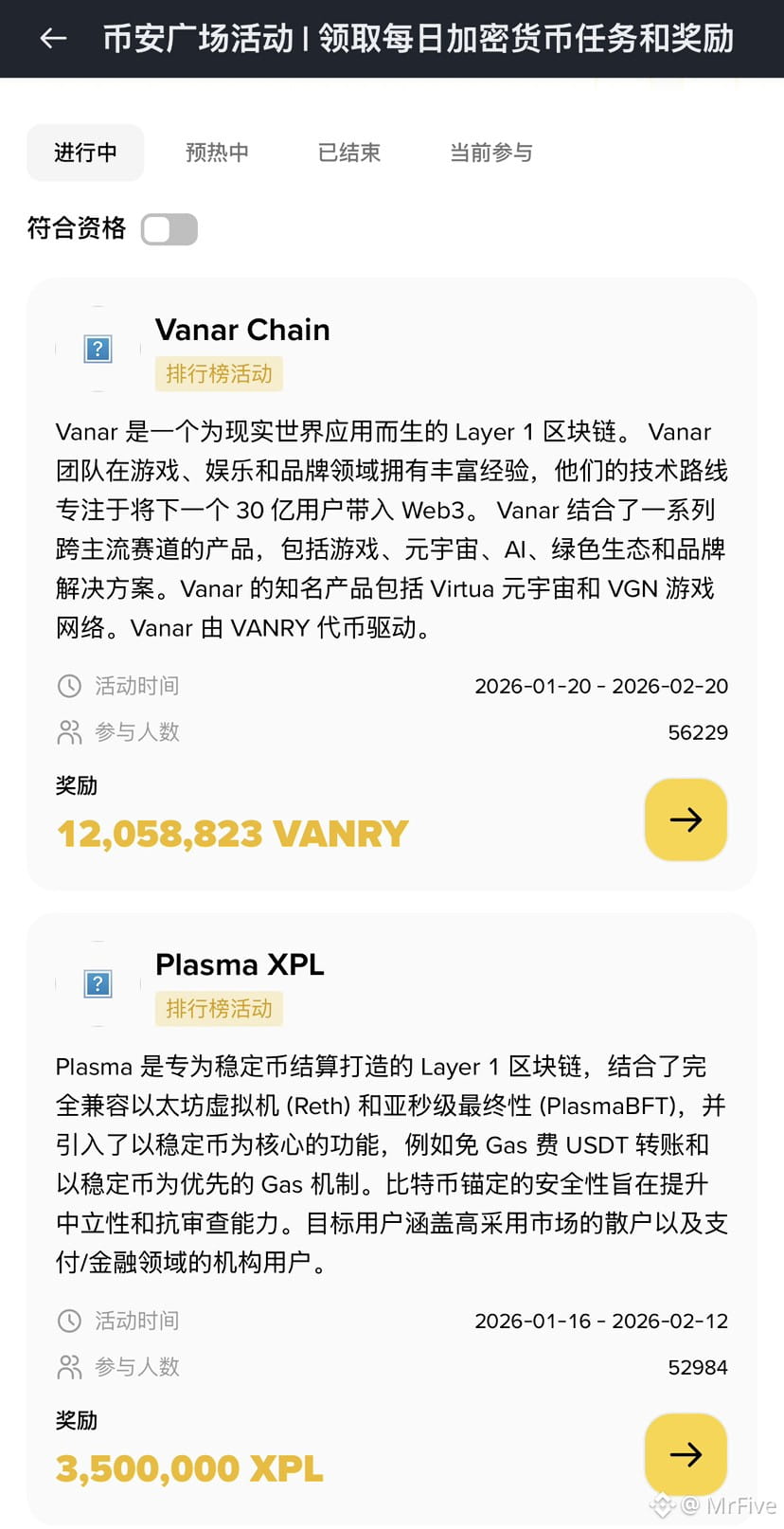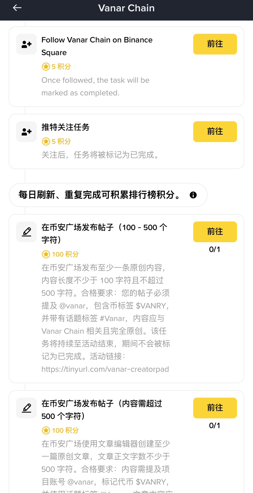 2)项目嘴撸:这是币安广场和一些优质项目发展的一项活动,你可以选择你喜欢的项目,他有三个板块,一个是社交媒体任务,一个是发贴任务(根据你自己对这个项目的理解,发表你的看法),最后一个交易任务,发贴任务是获得积分最快最多的那一项。你的积分越多,排名就越靠前,奖励自然而然也就越多。
