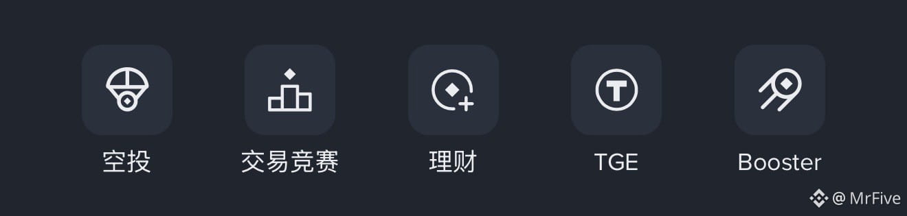 首先人尽皆知的Alpha,大部分只知道交易量拿分领空投,这只是第一层玩法,还有交易竞赛,理财,TGE打新,Booster,每个的福利都不容小觑