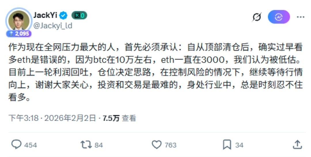 最近24小时也正在主动降低风险,从交易所提了USDT存AAVE还了部分债,还卖了约33,589个ETH(亏了2,771万美元)来降杠杆,这样爆仓价从早期的1,860美元降到1,834美元。(他们的ETH平均买价约3,180美元,现在浮亏约4.75亿美元)总持仓从约651,000个ETH降到618,000个(最近几次转出10,000个ETH到交易所,可能锁亏或换成稳定币)。如果继续加钱(比如多加100,000个ETH或直接还2亿美元债),爆仓价能再降到1,500-1,600美元。但从这24小时的反应来看资金靠交易所流动性,如果交易所限提就麻烦