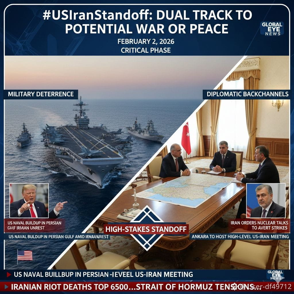 #USIranStandoff As of **February 2, 2026**, the standoff between the United States and Iran has reached a critical "high-stakes" phase. Tensions have surged following a month of violent domestic unrest in Iran and a significant U.S. military buildup, yet both sides are simultaneously signaling a tentative opening for diplomacy.