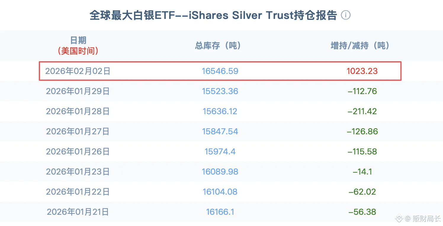 全球最大白银ETF--iShares Silver Trust持仓较上个交易日增加1023.23吨。