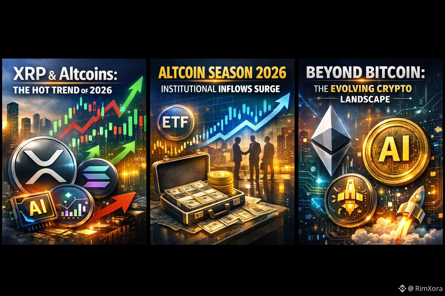 The crypto market has entered a dynamic phase in early 2026 where altcoins like XRP, Solana, and emerging AI-related tokens are grabbing headlines alongside Bitcoin and Ethereum. After several years dominated by Bitcoin’s narrative, 2026 is shaping up as a multi-polar market trend driven by institutional flows, new use-cases, and shifting investor sentiment.
