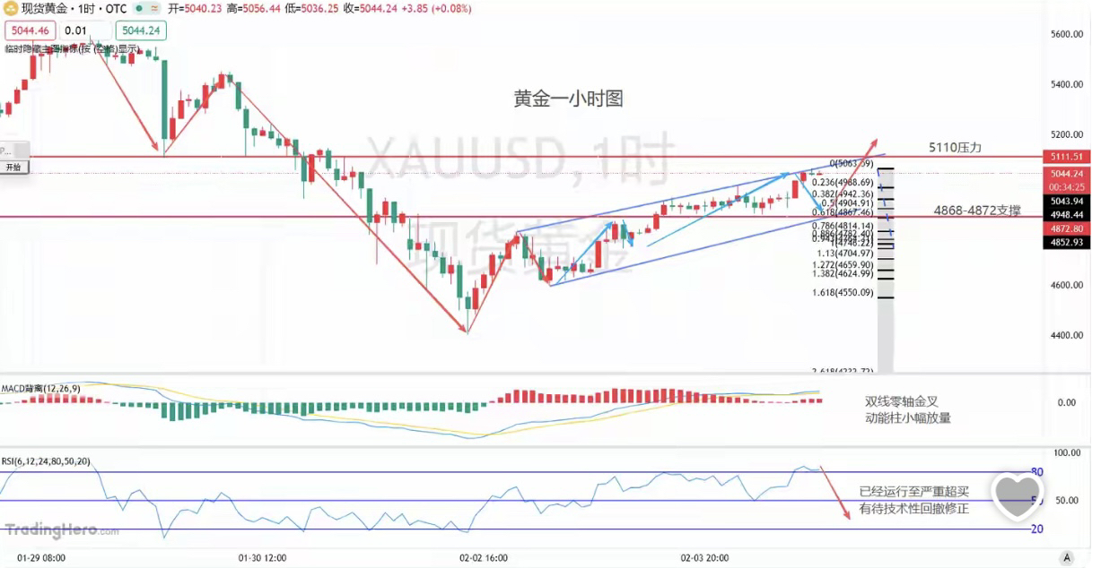 Zum Zeitpunkt der Erstellung dieses Berichts notiert der internationale Goldpreis bei 5060 Dollar/Unze und hat erfolgreich die psychologische Marke von 5000 Dollar zurückerobert. Der gestrige Handel erlebte zweimal schnelle Rückzüge von über hundert Dollar, was auf einen intensiven Kampf zwischen Bullen und Bären hinweist. Nach dem Ende eines kurzen Verkaufsdrucks hat der Goldpreis schnell verlorenes Terrain zurückgewonnen und zeigt eine vorübergehende Aufwärtsbewegung.