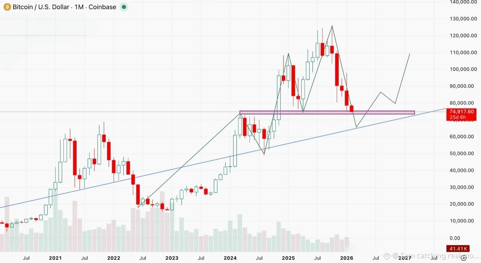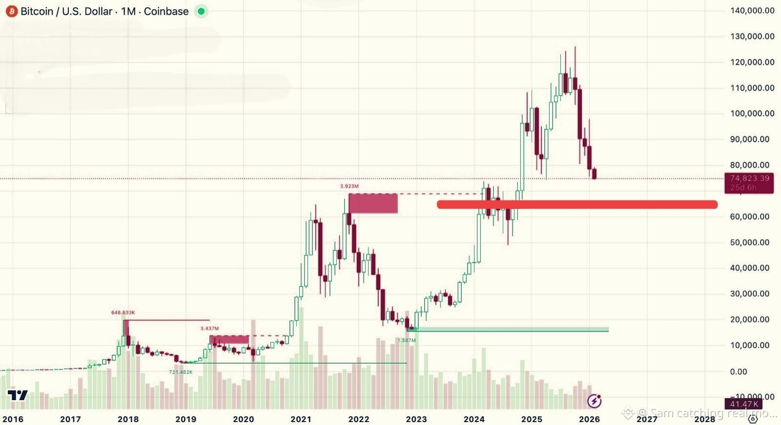 Zooming out, BTC expanded hard after breaking a major level. That move left behind unfinished business. When price failed to hold acceptance above the mid-70s, it stopped trending and started drifting.