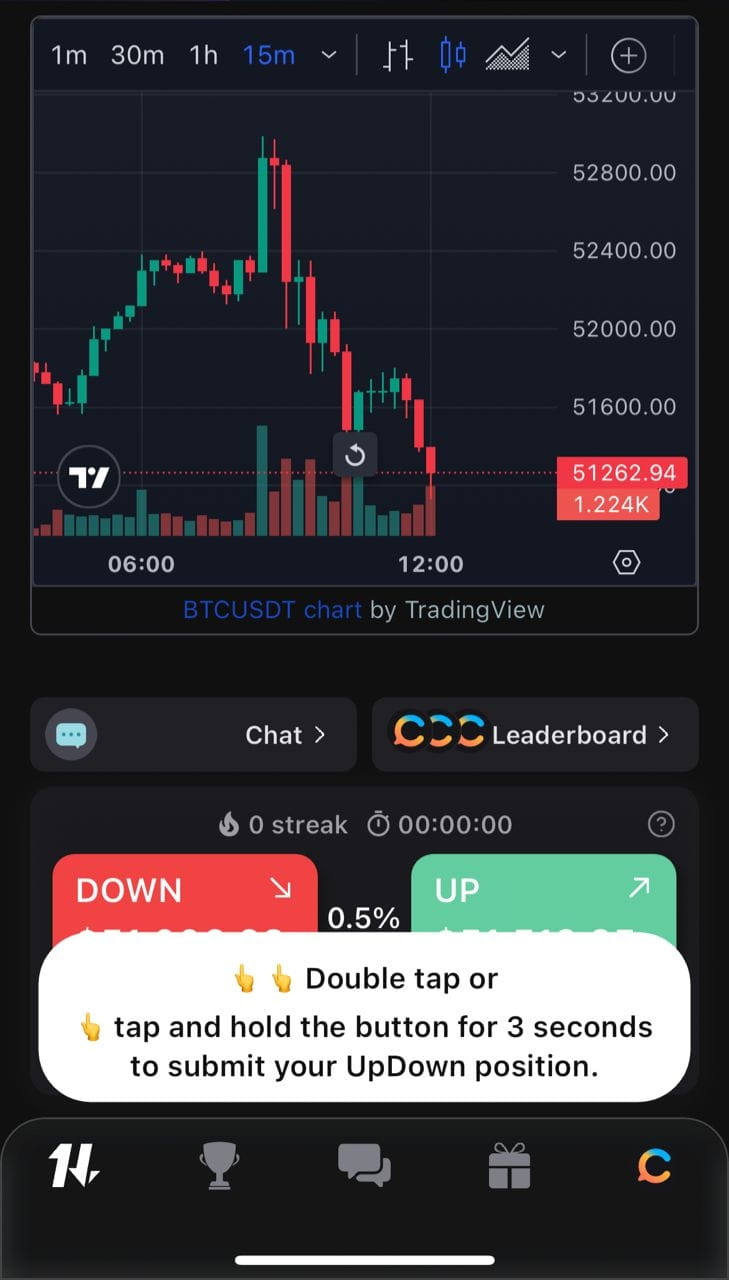 Schritt 5: Sagen Sie auf der Hauptseite den BTC-Preis voraus, indem Sie auf den Preis doppelklicken oder den ausgewählten Preis 3 Sekunden lang gedrückt halten.